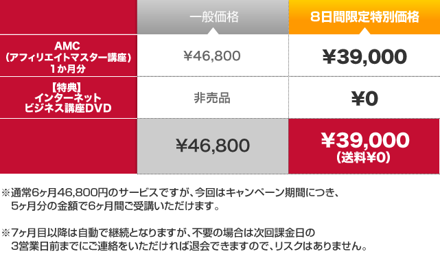 AMC【アフィリエイトマスター講座】…半年払い39,000円(送料0円)